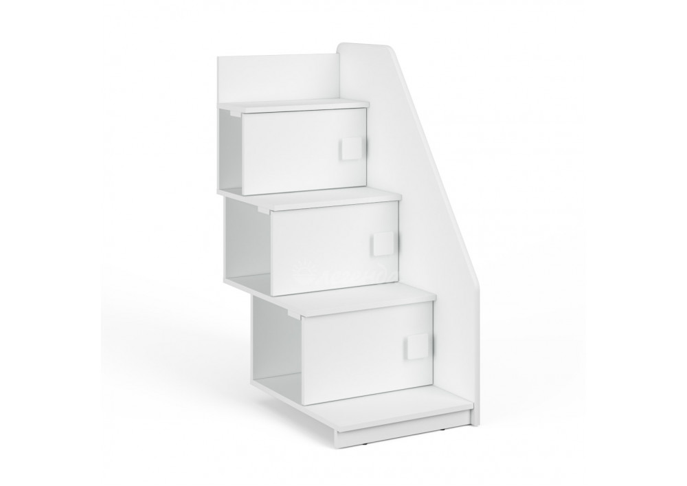 Лестница средней величины из трех ступенек,сочетается с невысокими кроватями-чердаками. Предназначена для боковой установки к кровати.